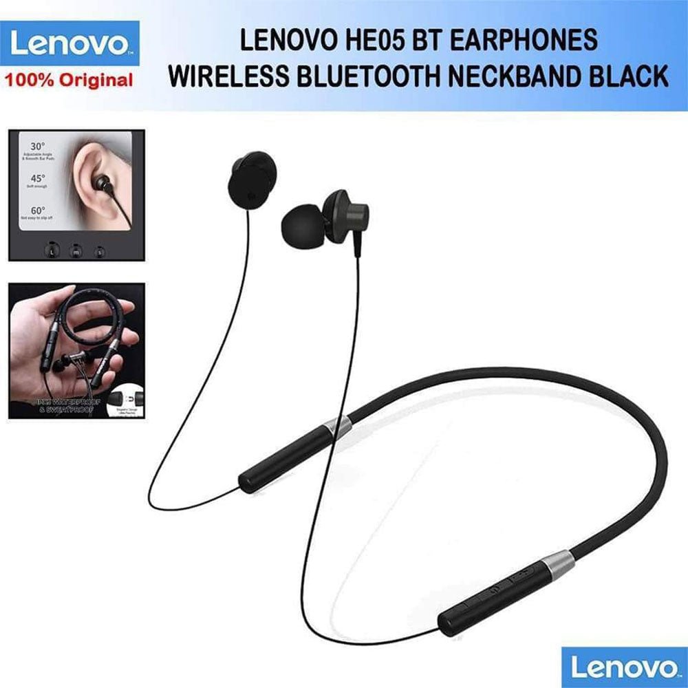 Lenovo HE05 is a budget-friendly wireless neckband headset designed for comfort and daily use, especially popular in Pakistan: